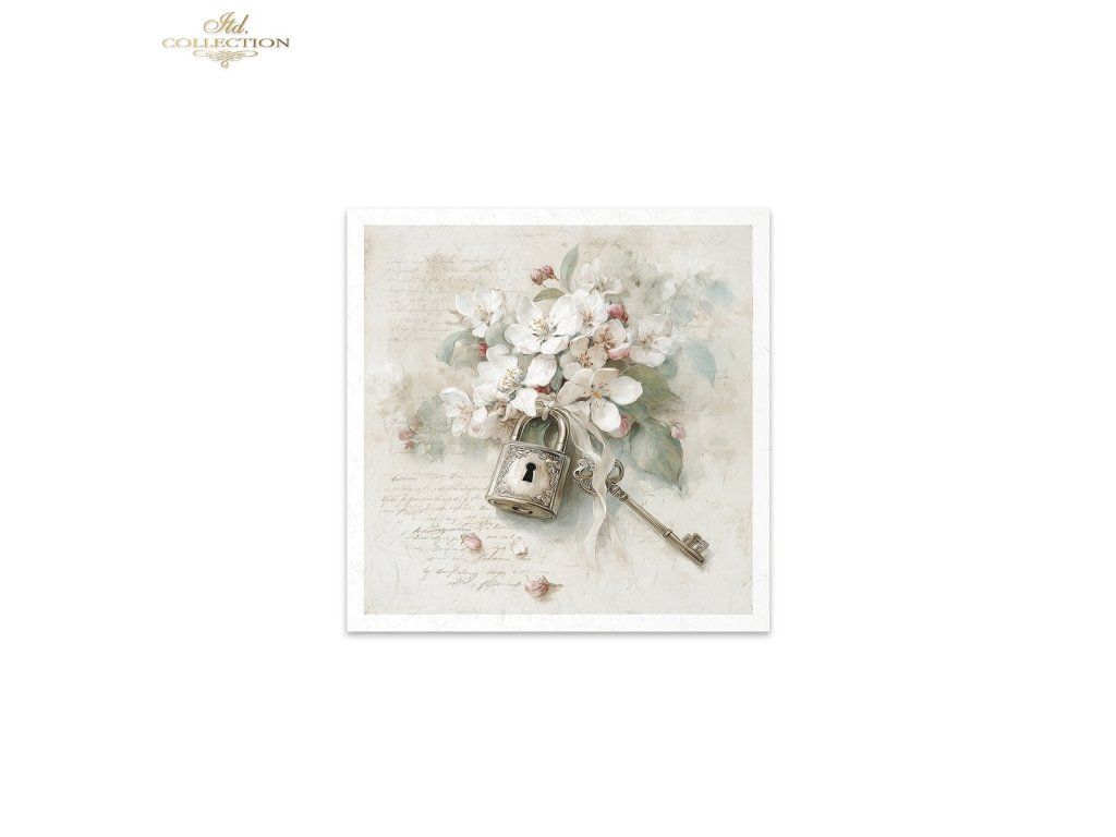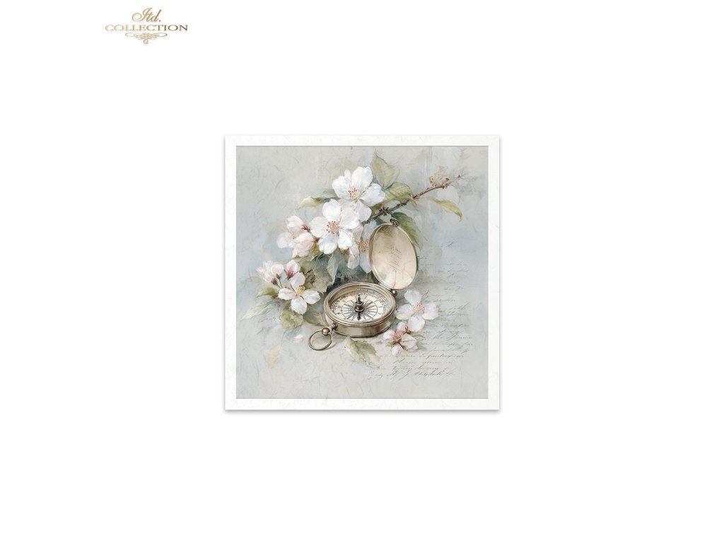 RSM259 - jabloňové květy, vintage, akvarely, visací zámek, šperky, šálky, kompas, písmena, kytice, pastelové barvy, romantický styl.