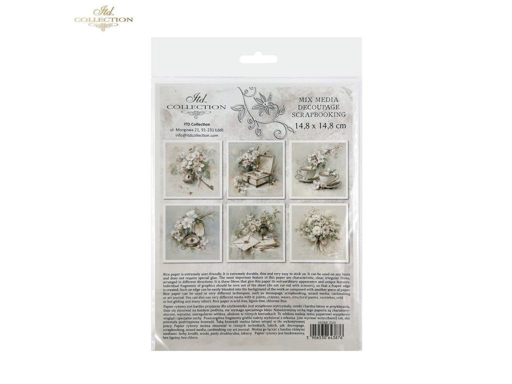 Sada rýžových papírů ITD Collection RSM259 Written in Flowers jabloňové květy 14,8x14,8 cm 6ks