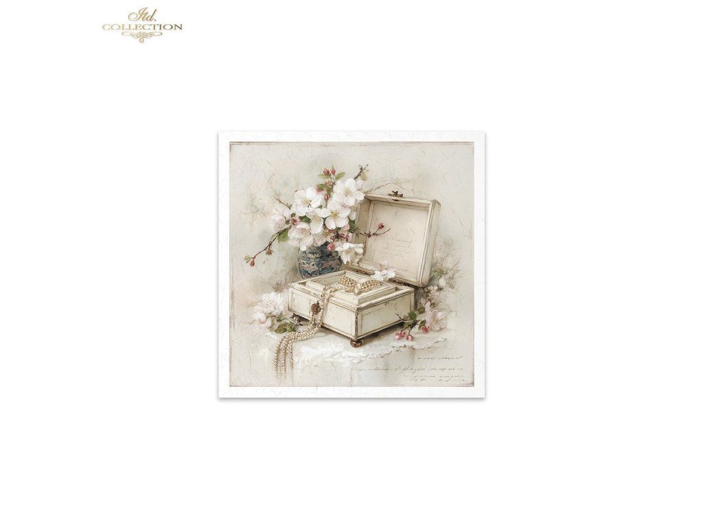 RSM261 - karafa, láhev, krabička, dárek, sklenice, hodinky, bílé květiny, vintage, pastel, romantický, sépie, zátiší
