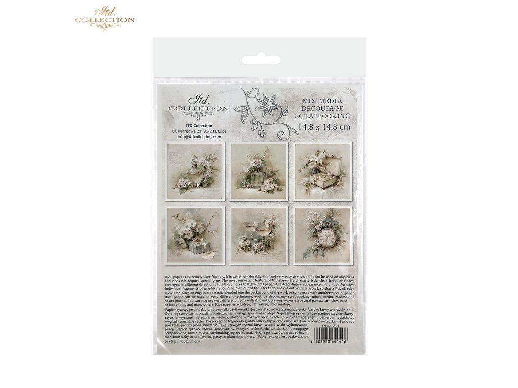 Sada rýžových papírů ITD Collection RSM261 Written in Flowers doplňky 14,8x14,8 cm 6ks
