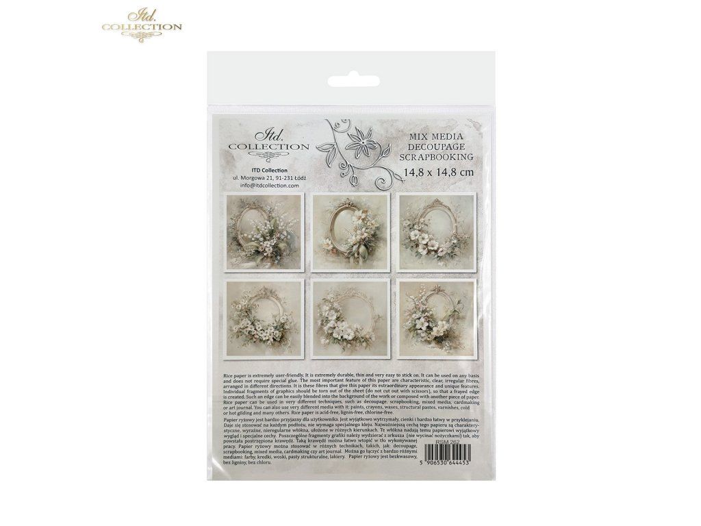 Sada rýžových papírů ITD Collection RSM262 Written in Flowers rámečky 14,8x14,8 cm 6ks