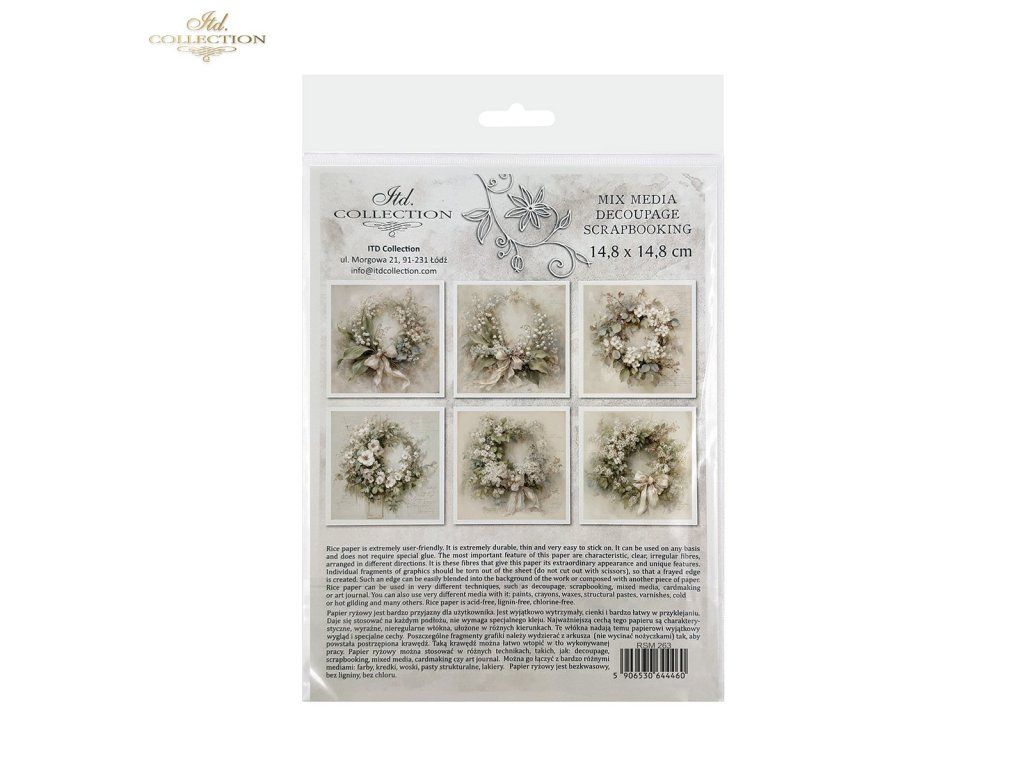 Sada rýžových papírů ITD Collection RSM263 Written in Flowers věnečky 14,8x14,8 cm 6ks