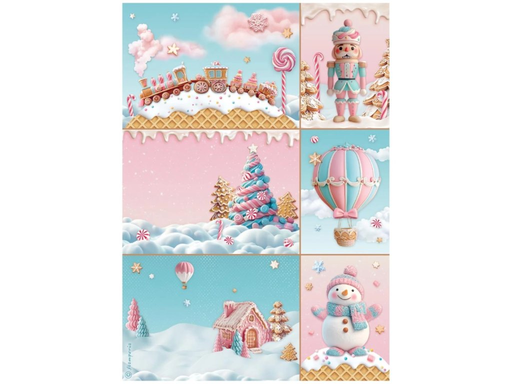 Sada rýžových papírů Stamperia A4 Candy Christmas Sladké vánoce 6ks