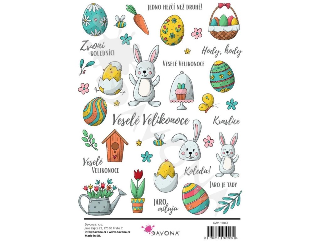 Samolepky A5 barevné průhledné Veselé Velikonoce