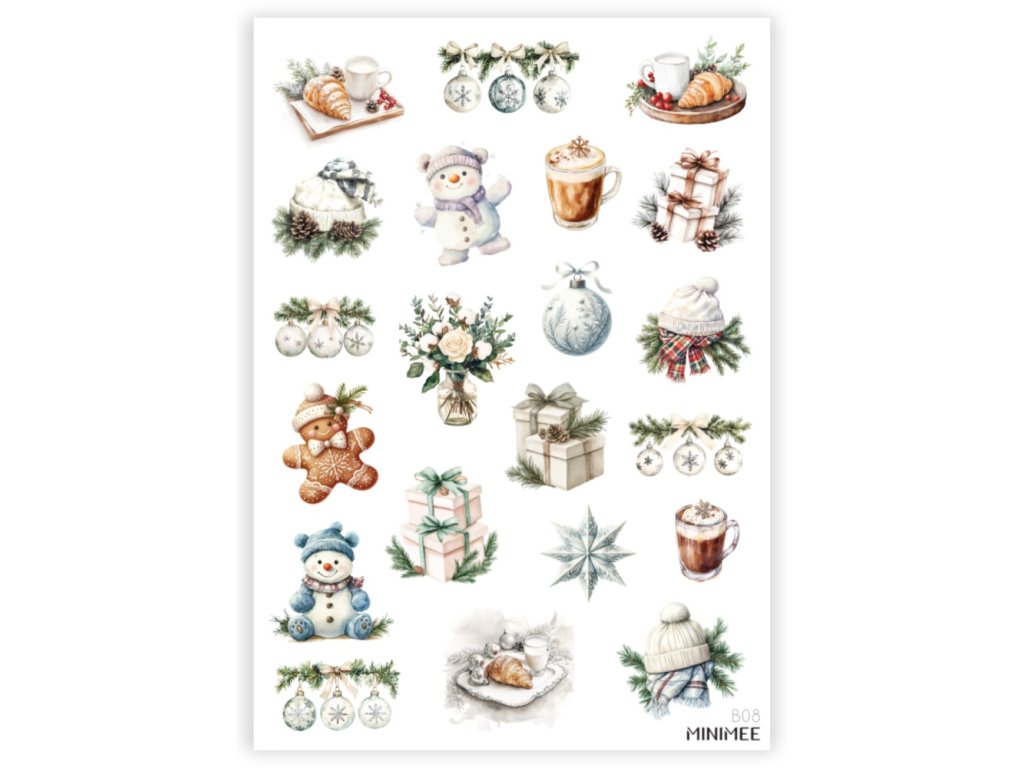 Samolepky MINIMEE bílé zimní a vánoční motivy A5