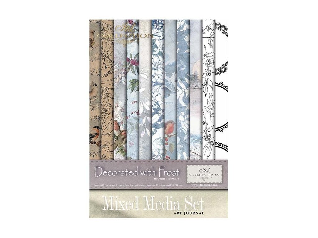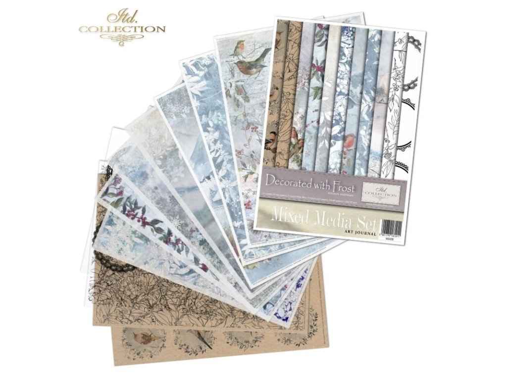 Sada zdobená námrazou pro kombinovaná média, umělecký deník, decoupage, scrapbooking. Zdobené námrazou - výhledy, ptáci, rostliny, tapety, rostlinná pozadí, zimní krajina...