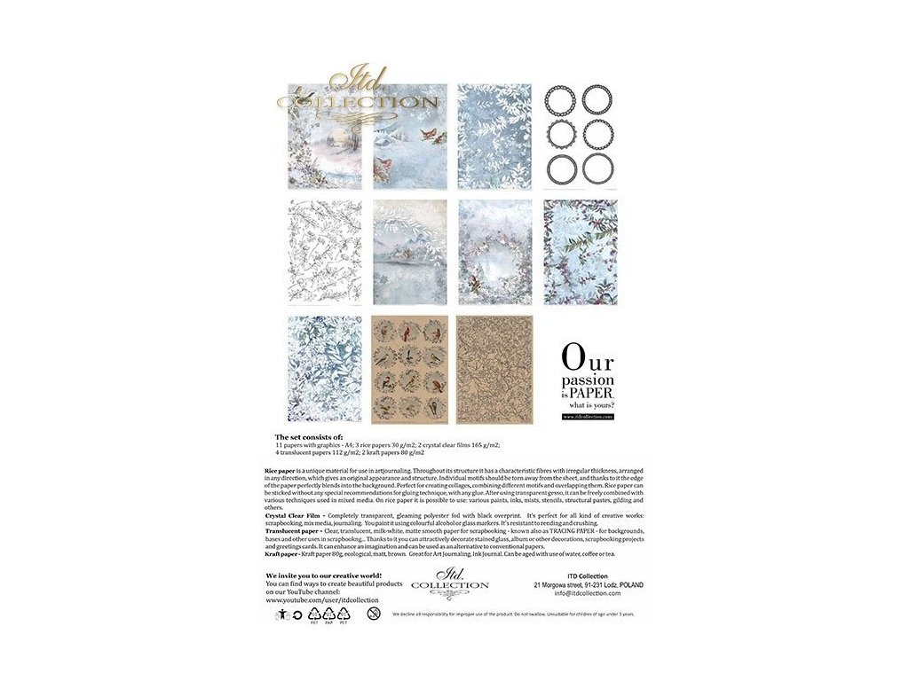 - sada se skládá z: - 3 x rýžový papír 30 g/m2 - 2 x křišťálově čistá fólie 165 g/m2 - 4 x průsvitný papír 112 g/m2 - 2 x kraftový papír 80 g/m2