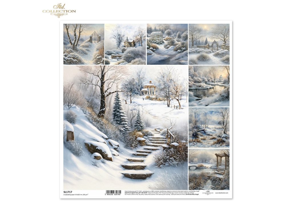 Scrapbookový papír ITD Collection SL1717 pohled do zimní krajiny 30x30cm 1 kus