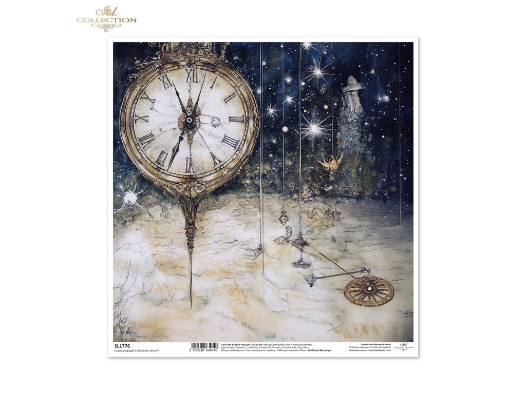 Scrapbookový papír ITD Collection SL1776 fantastické pozadí a hodiny 30x30cm 1 kus