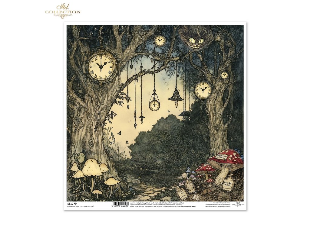 Scrapbookový papír ITD Collection SL1779 hodiny v lese 30x30cm 1 kus