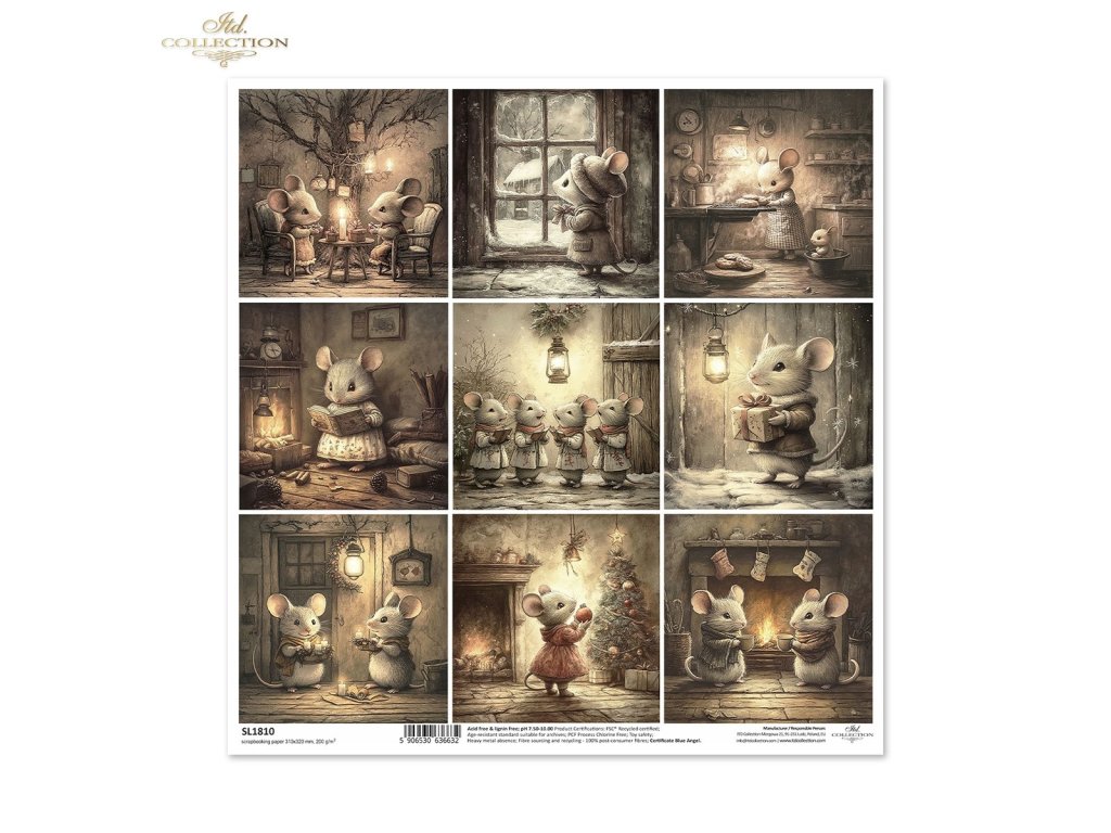 Scrapbookový papír ITD Collection SL1810 Vánoční myšky 30x30cm 1 kus