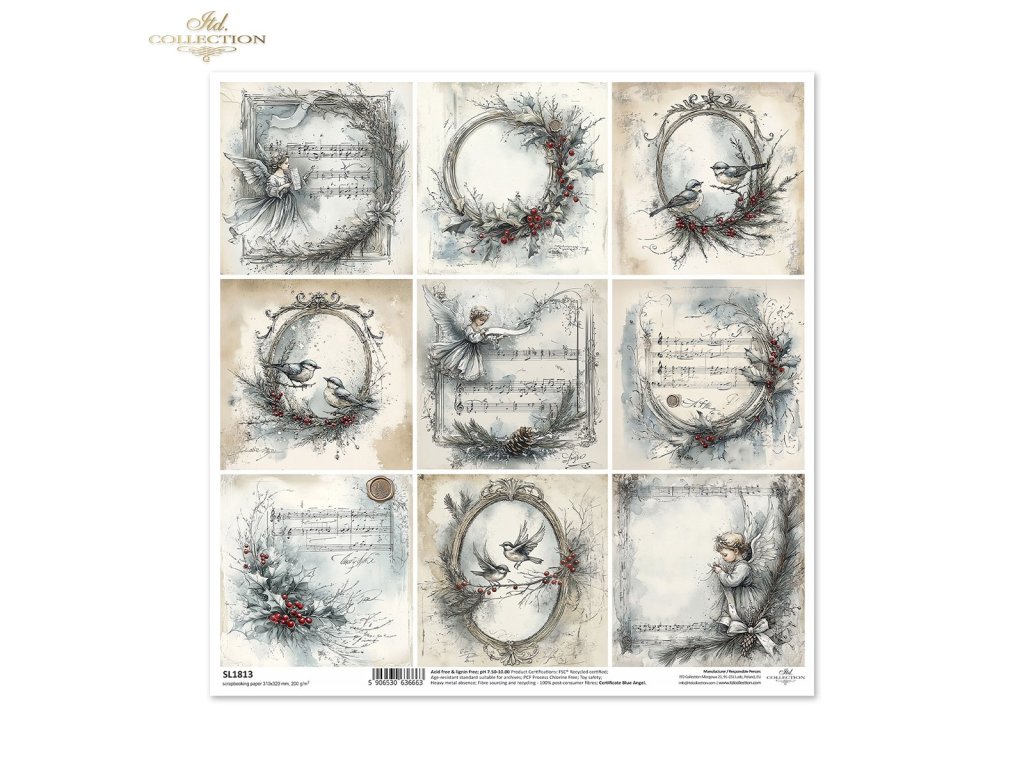 Scrapbookový papír ITD Collection SL1813 ptáci, andělé, věnce 30x30cm 1 kus