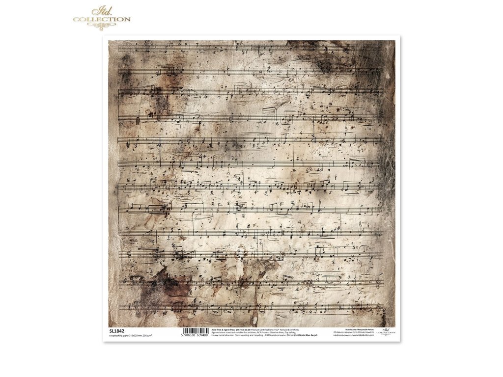 Scrapbookový papír ITD Collection SL1842 Notový zápis 30x30cm 1 kus