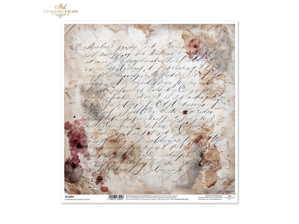 Scrapbookový papír ITD Collection SL1843 Vintage písmo 30x30cm 1 kus