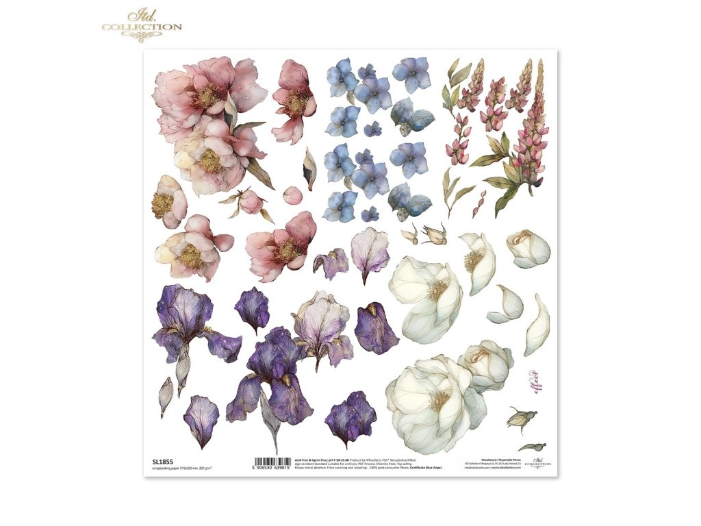 Scrapbookový papír ITD Collection SL1855 Květinové motivy 30x30cm 1 kus