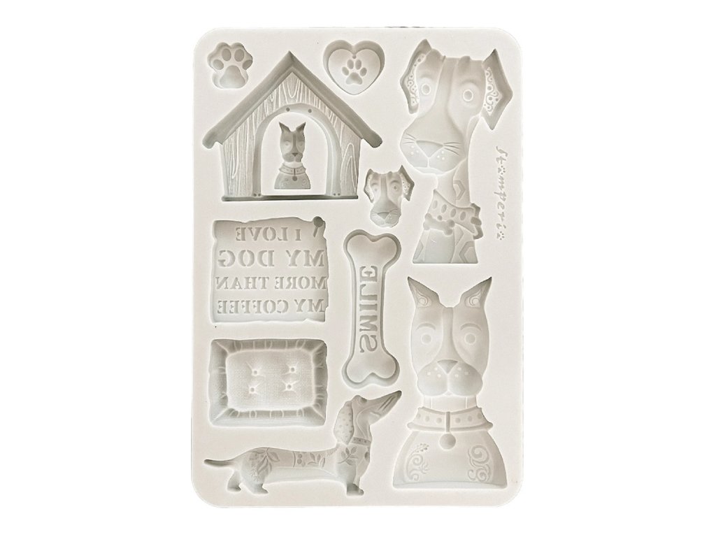 Stamperia forma na odlévání silikonová A5 Furry Friends chlupatí přátelé psi