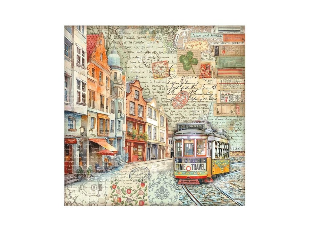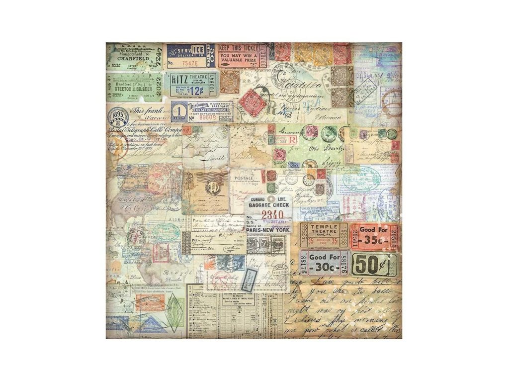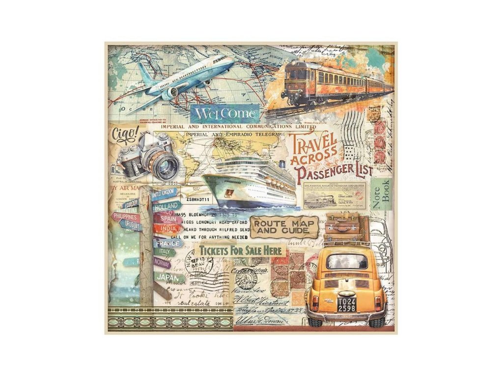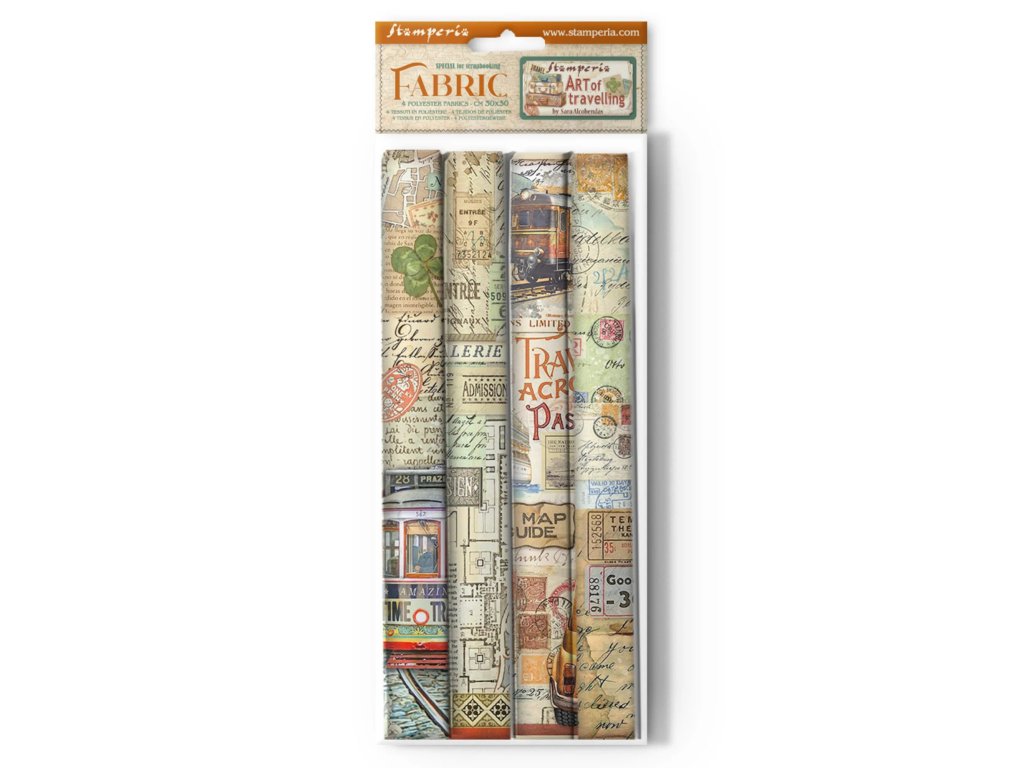 Stamperia látka na scrapbooking Art of Travelling Fabric Sheet 30x30cm 4ks