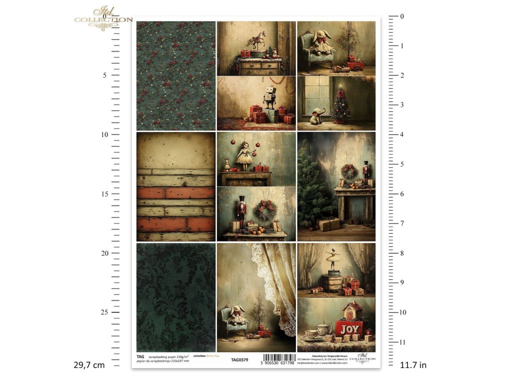 scrapbookový papír * robot, dárky, svátky, vintage, retro, Louskáček, věnec, pomeranče, šišky, panenka, ozdoby, vánoční stromeček, plyšový králík, křeslo, vláček, baletka, hrací skříňka, záclony, houpací kůň...