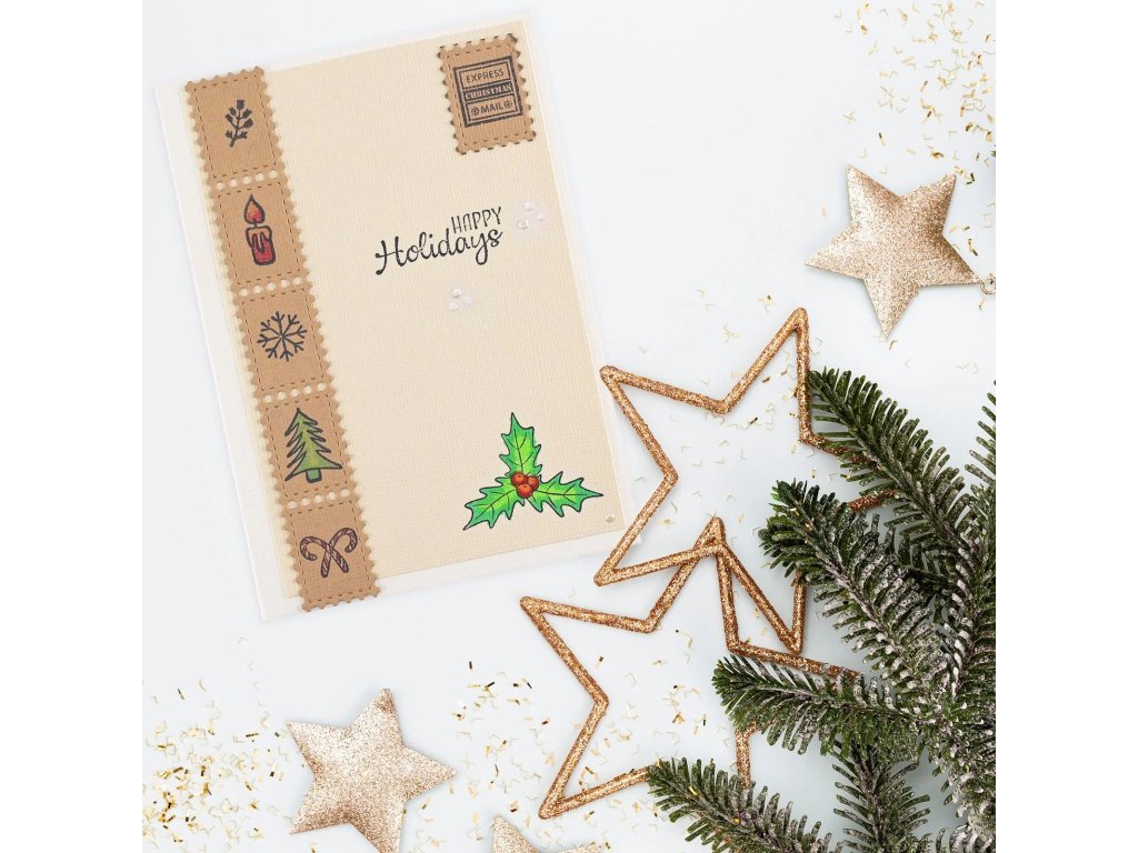 - Tato sada o rozměrech 14,8 x 10,5 cm obsahuje 9průhledných razítek různých velikostí s vánočními zvířátky a texty.