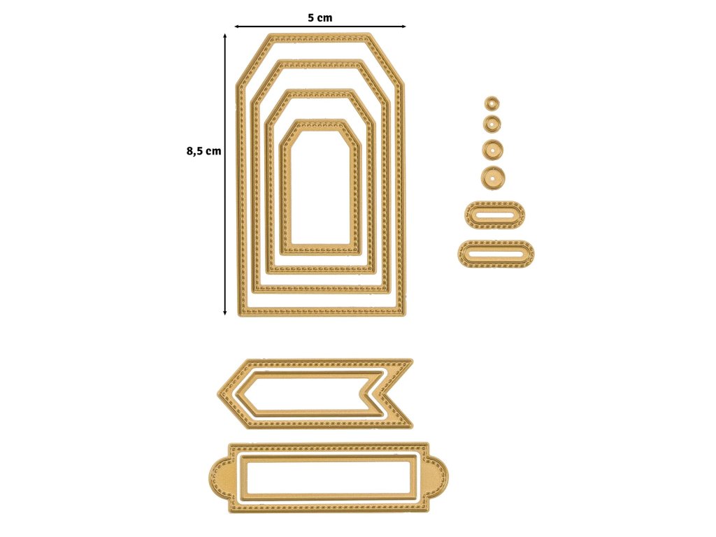 Vyřezávací kovová šablona Trapézové bannery a štítky 14ks