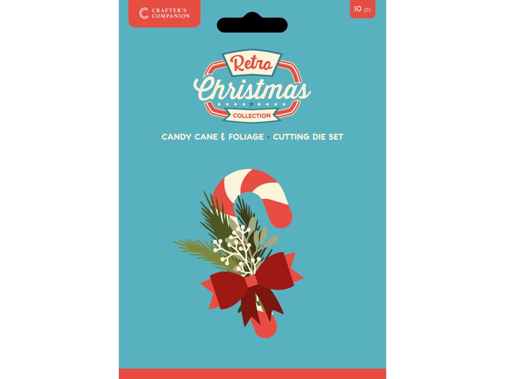 Vyřezávací kovové šablony Retro Christmas Cukrová hůlka a listí