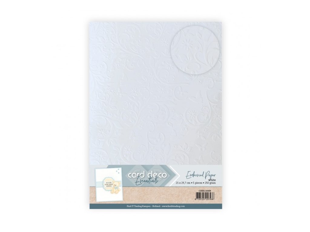 Vytlačený embosovaný papír A4 Card Deco Daisy Floral Elegance květinová elegance bílá 5ks