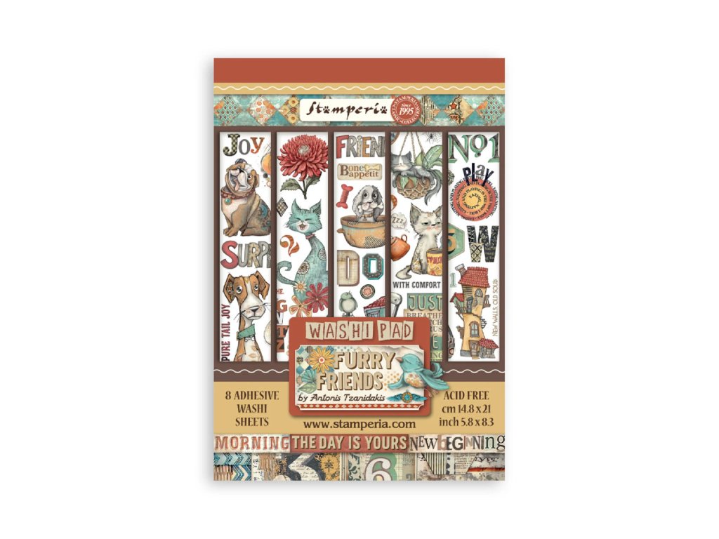 Washi papír Stamperia Furry Friends chlupatí přátelé A5 8ks